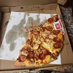 Visited the area for my son's baseball tournament and after a long day we wanted something easy for dinner. While the reviews on here are very mixed- it was close and the prices are on point. We had 2 large pizzas with regular crust. One cheese and one pineapple/ham with half jalapeños. I ordered it online which was super fast and simple, gave me a wait time and allowed me to pay, when I arrived they greeted me immediately and asked my name. Checked on my food, let me know it would be a few moments. About 5 minutes later a very nice taller gentlemen called my name. The food was done about 4 minutes early. The food was 3.5/5 . I wouldn't rave about it but it's so quick, easy, and is enjoyable. Total for 2 large, one specialty... was $31 with tax. Easy parking, oh... and the ranch is REALLY good! Enjoy!